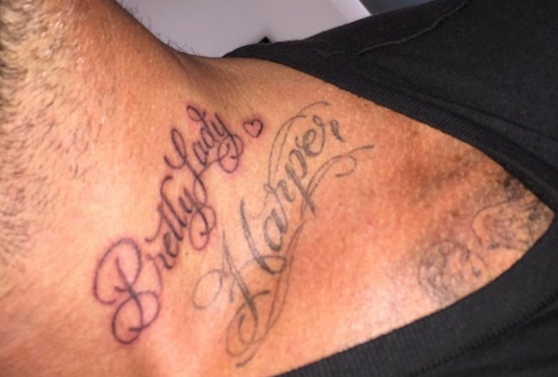 Daha önce üç çocuğunun isimlerini dövme yaptıran eski İngiliz futbolcu, bu kez de boynuna küçük kızı Harper’ın ismini yazdırdı.