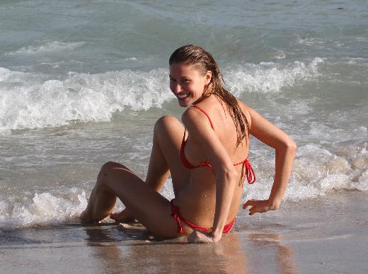 Kırmızı bikinisiyle sahilde görüntülenen Kent, gün boyu denizin tadını çıkardı. Fotoğraflarının çekilmesinden rahatsız olmayan seksi model, sempatik tavırlarıyla dikkat çekti.