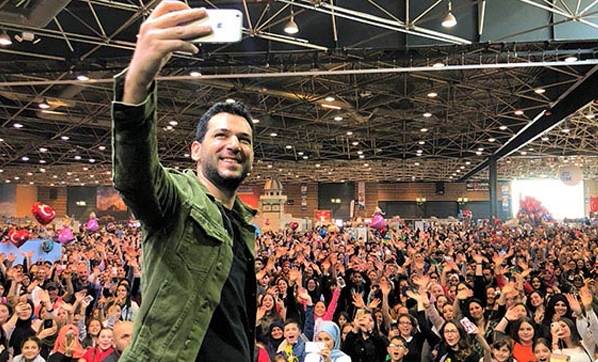 Ödül töreninden sonra hayranlarının yoğun ilgisiyle karşılaşan Murat Yıldırım, Türk ve Arap hayranlarıyla tek tek ilgilendi.