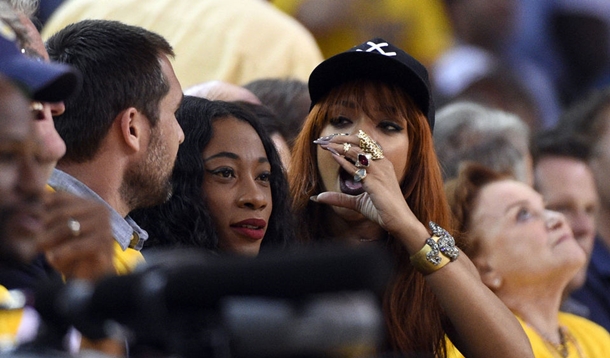Binlerce kişinin doldurduğu salonda, maçı Golden State Warriors’ın sahibi Joe Lacob ve nişanlısı Nicole Curran ile yanyana izleyen Rihanna, küçük çaplı bir kıskançlık krizi yarattı. Rihanna ile yan yana oturan Joe Lacob bir süre sonra yerini değiştirerek kendi yerine nişanlısını oturttu.