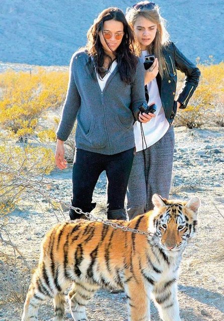 Michelle Rodriguez ve Cara Delevingne, Nevada’daki Büyük Kediler Çiftliği’ni ziyaret etti.