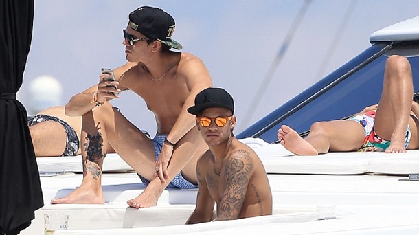Barcelona forması giyen Brezilyalı yıldız Neymar, takım kampına katılmadan önce İbiza adası tatilinde eğleniyor.