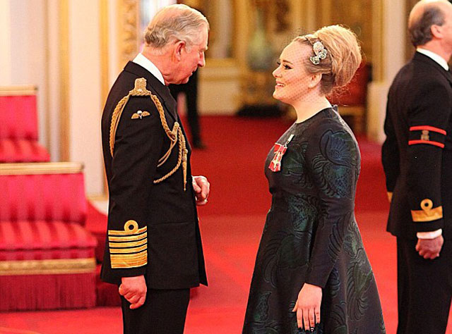 Member of British Empire / Britanya İmparatorluğu Mensubu ödülüne layık görülen Adele, nişanını Prens Charles’ın elinden aldı.