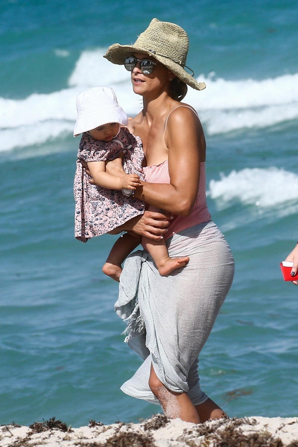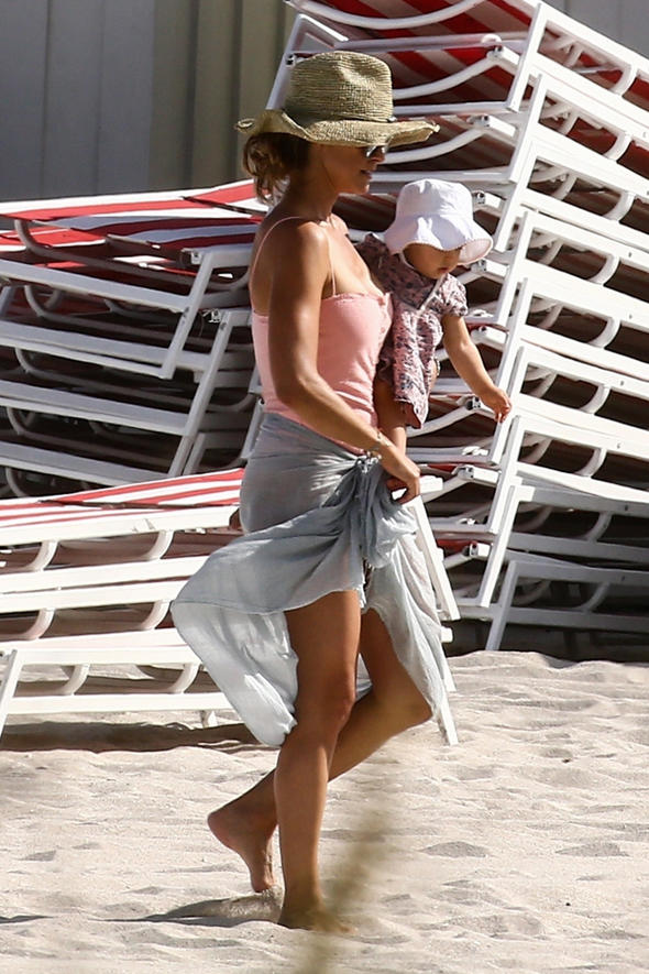 Pembe bir mayo giyen Prenses Madeleine, beline sardığı pareoyu hiç çıkarmadı.