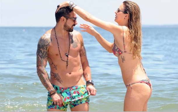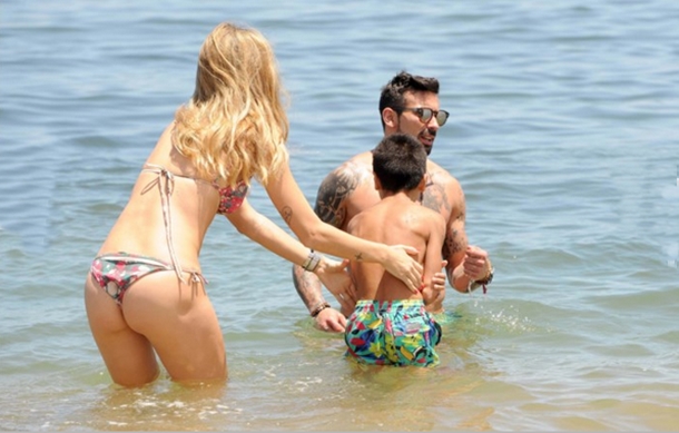 Fransız temsilcisi Paris Saint-Germain forması giyen Arjantinli futbolcu Ezequiel Lavezzi, eşi Yanina Screpante ve oğlu ile birlikte Uruguay’da tatil yaparken görüntülendi.