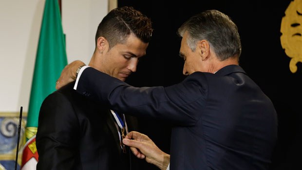 Lizbon’daki Cumhurbaşkanlığı sarayında düzenlenen törende, Portekizli denizci Prens Henrique adına verilen haç şeklindeki devlet nişanını Ronaldo’ya, Portekiz Cumhurbaşkanı Anibal Cavaco Silva taktı.