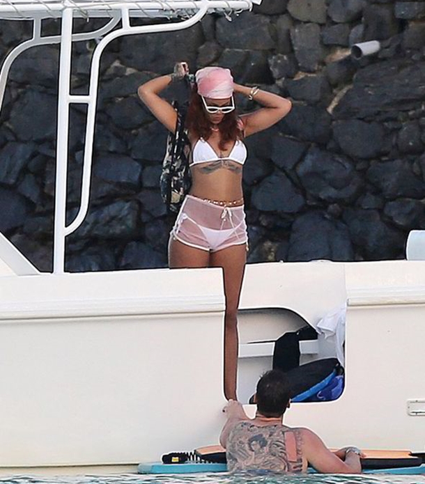 Yeni albümü öncesi stres atan Rihanna, Hawaii’nin berrak ve turkuaz denizinin keyfini sürdü. arkadaşlarıyla birlikte tekne turu yapan şarkıcı, beyaz bir bikini tercih etti. Riri, sıcaktan bunaldığı anlarda kendini denize atarak serinledi.
