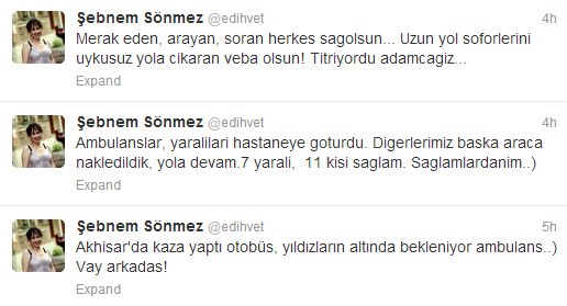 Şebnem Sönmez’in içinde bulunduğu otobüs, Manisa’nın Akhisar ilçesinde trafik kazası yaptı.