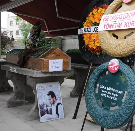Kayseri’nin Kocasinan ilçesi Fatih Mahallesi eski muhtarı ve CHP üyesi Nuri Teoman’ın oğlu olan Seyfi Teoman’ın cenaze törenine CHP Kayseri Milletvekili Şevki Kulkuloğlu, CHP Kayseri il Başkanı Ayhan Gülsoy, CHP ilçe başkanları, belediye başkanları, il genel ve belediye meclis üyeleri de katıldı. Baba Nuri Teoman, başsağlığı dileklerini kabul etti. Cami avlusunda Ankara ve İstanbul ile Polonya Lodz Film yönetmenliği okulundan birlikte mezun olduğu 2 İngiliz arkadaşı da Teoman ailesinin acısını paylaşıp, gözyaşı döktü.