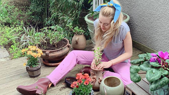 Güzel oyuncu, önceki gün bahçesindeki çiçeklerin saksılarını değiştirip bakımlarını yaptı.