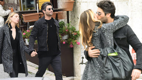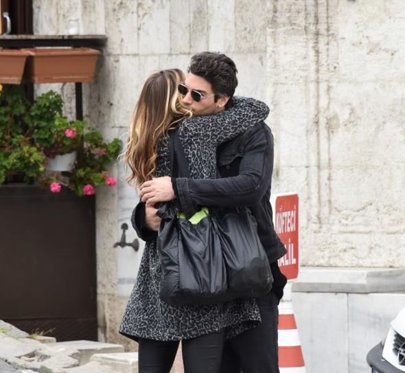Özyıldız’ın Rumelihisarı’ndaki evinden el ele çıkan ikili, öpüştükten sonra ayrı ayrı taksilere bindi.