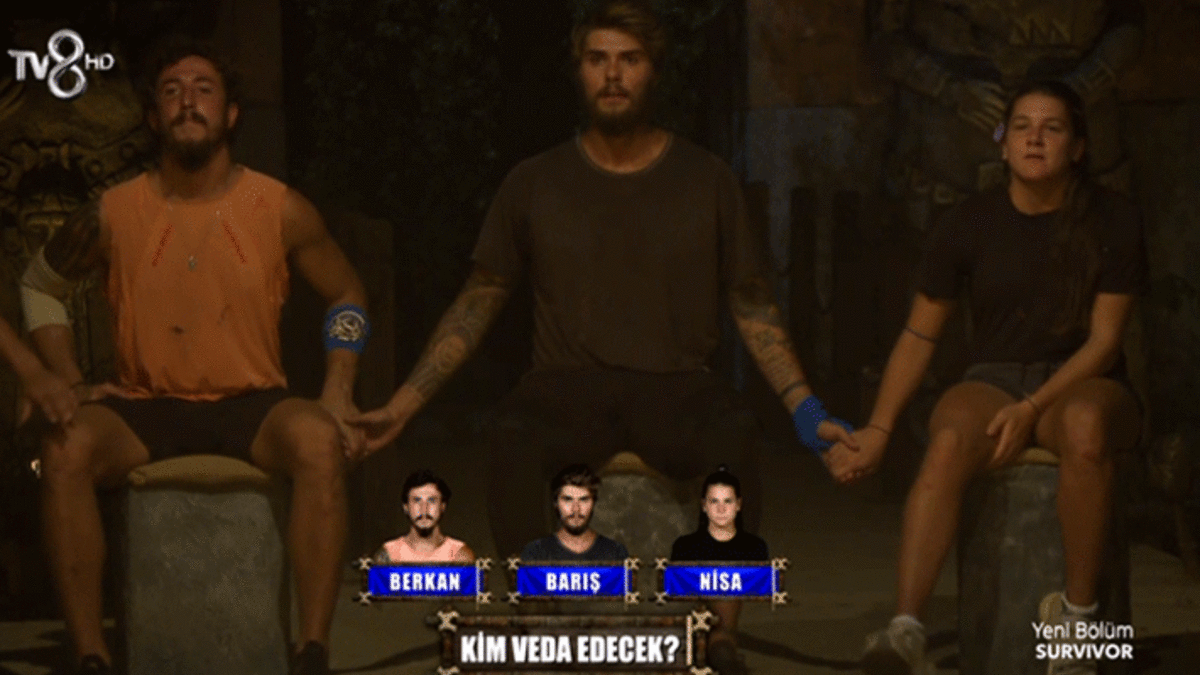 Sercan eleme potasına Barış, Nisa ve Berkan’ı gönderdi. Eleme heyecanı yaşan üç yarışmacı el ele tutuşup o anı bekledi. Bu üç isimden veda eden ise Nisa oldu.
