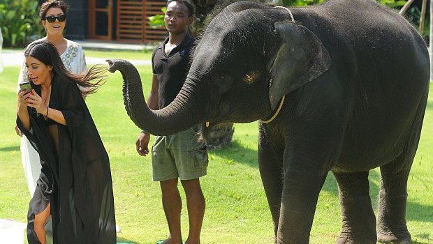 Doğun sonrası verdiği kilolarla gündeme gelen Kim Kardashian, ailesiyle birlikte Tayland’da tatil yapıyor. Yavru bir fille selfie çekmeye çalışırken görüntülenen Kardashian, huysuzlanan filden korkup kaçtı.