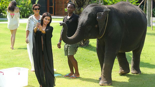Tayland Turuna devam eden Kim Kardashian, gördüğü yavru fille fotoğraf çekmek istedi, ortaya renkli görüntüler çıktı.