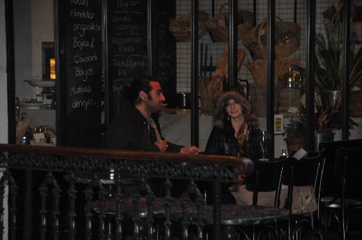 Nişantaşı’ndaki bir kafede koyu bir sohbete dalış olan ikili objektifleri fark edince tedirgin oldu.