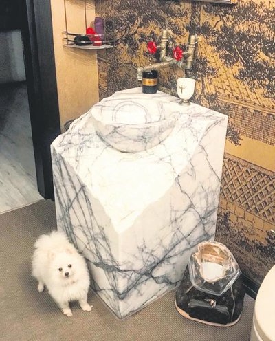 Şafak Çak, banyosundaki lavaboyu 1 tonluk masif mermerden yaptı. Çak’ın çöp kutusu ise eşinin yıllar önce aldığı 9 bin liralık Louis Vuitton marka çantası.