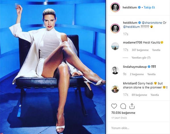 Heidi Klum, Hollywood yıldızı Sharon Stone’un ünlü pozunun aynısını paylaştı.