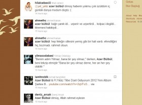 Nihat Doğan: Değerli sanatçı arkadaşım AZER BÜLBÜL ü kaybetmiş bulunmaktayız.sanat camiasının başı sağolsun.allah rahmet eylesin.mekanı cennet olsun.