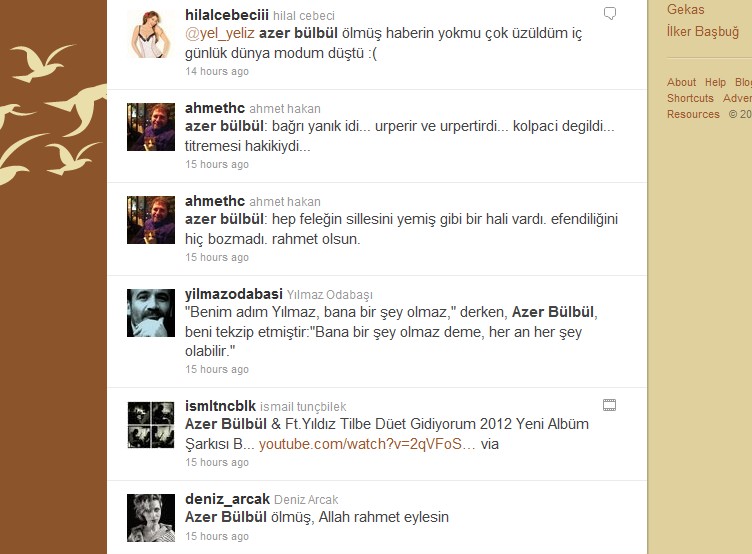 Hilal Cebeci: Sevgili Azer Bülbül için çok üzüldüm, çok iyi kalpli bir insandı allahdan rahmet diliyorum ailesine sabır diliyorum hayat çok anlamsız.