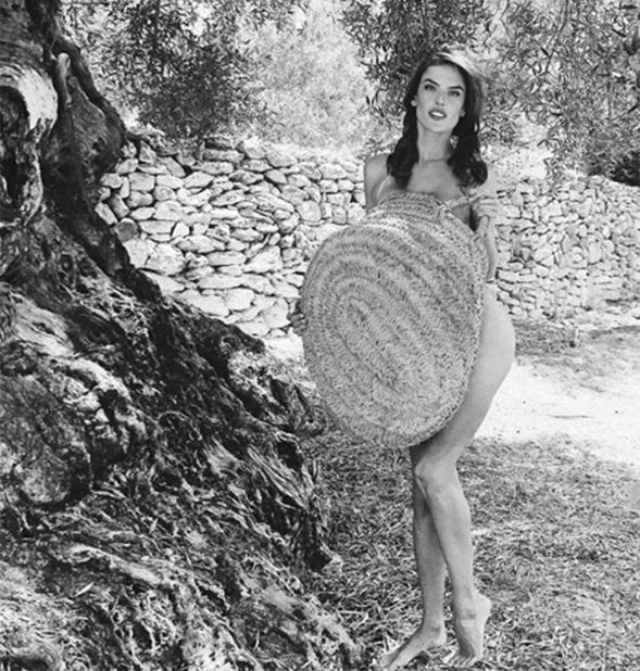 ‘Zeytin Toplama’ notunu düştüğü karede çırılçıplak olan Ambrosio, elinde tuttuğu hasır sepetle vücudunu örttü.