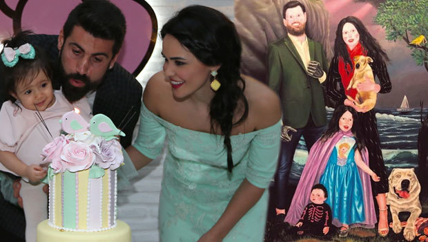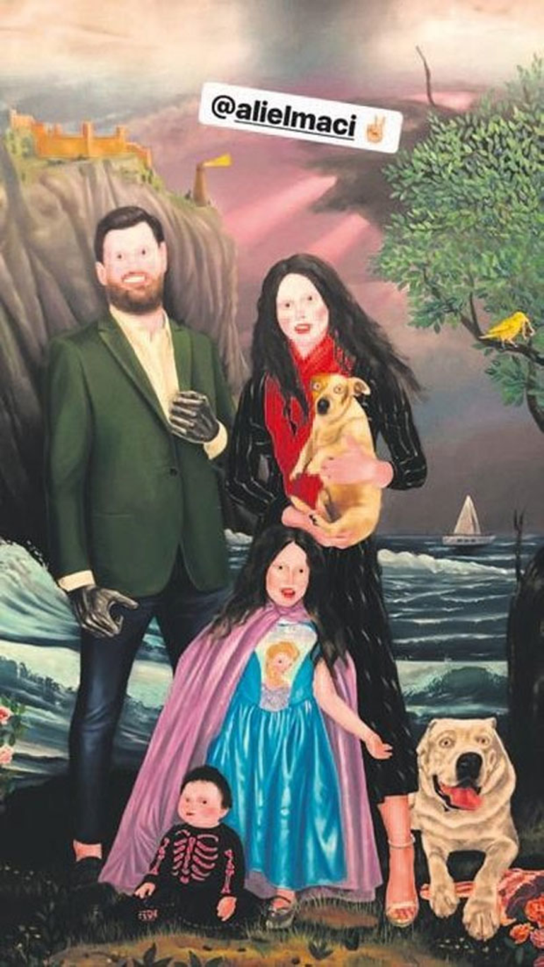 Resssam Ali Elmacı tabloda Volkan Demirel, eşi Zeynep Sever Demirel, kızları Yade , Yeda ve ailenin iki köpeğine yer verdi.