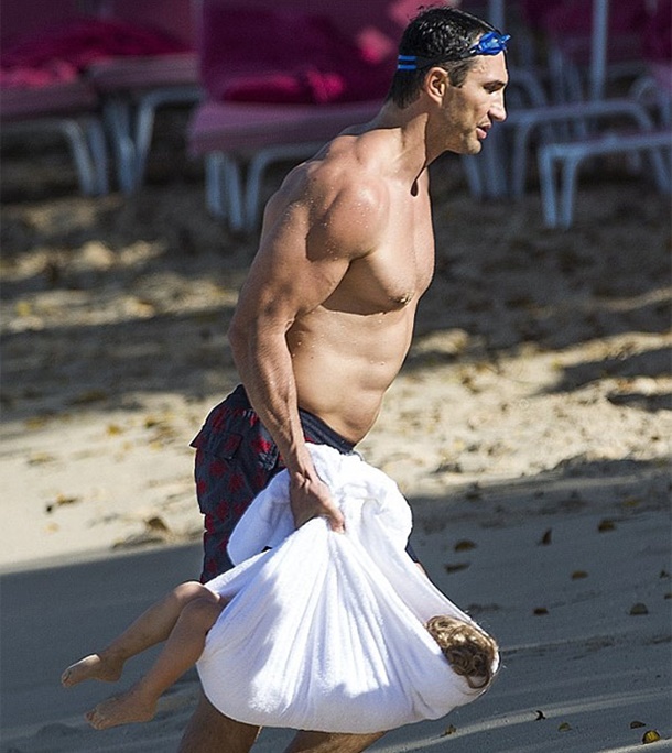 Wladimir Klitschko, 3 yaşındaki kızıyla Barbados sahillerinde güneşin ve denizin tadını çıkardı. 41 yaşındaki ünlü boksörün kızını havluya sararak taşıması ortaya renkli görüntüler çıkardı.