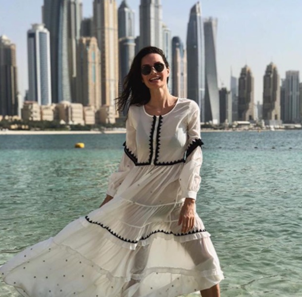 Güzel oyuncunun arkasına aldığı muhteşem Dubai manzaraları eşiğinde verdiği pozlar bir moda çekiminden farksızdı.