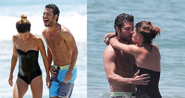 Siyah, tek parça bir mayo giyen seksi oyuncu, zaman zaman yeni sevgilisi ile öpüştü. Bir kafede kahvaltı yapan çift, daha sonra kumsala geçerek denizin, güneşin ve romantizmin keyfini çıkardı.