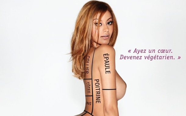 23 yaşındaki Zahia Dehar, PETA’nın et üretimine karşı kampanyasına destek için çıplak poz verdi.